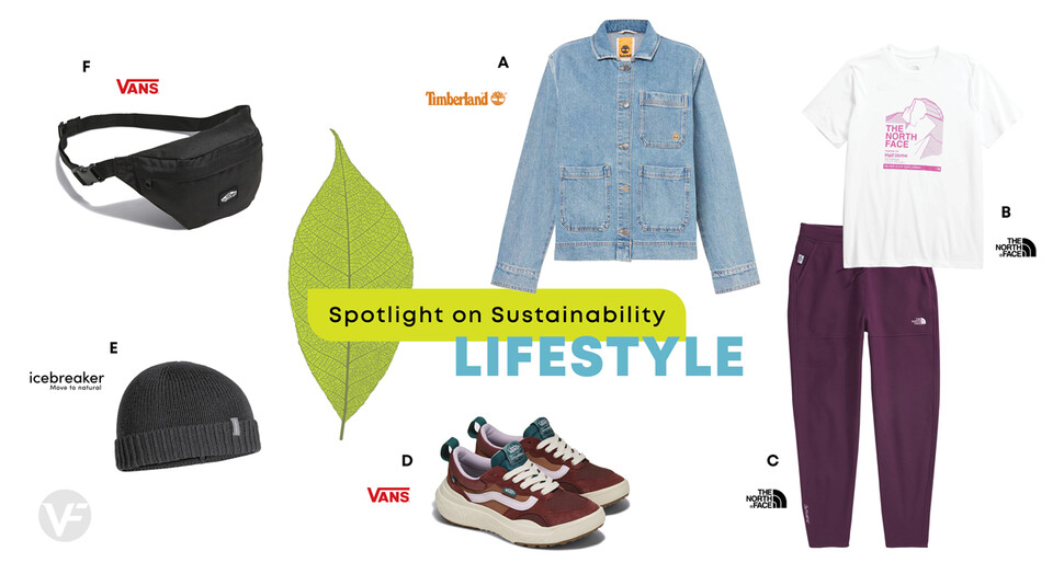 Above are two outfits 鈥 a women鈥檚 lifestyle outfit and a men鈥檚 active outfit 鈥 where every item incorporates materials that have sustainable attributes. These items can be mixed and matched to create a variety of looks to meet your needs whether you鈥檙e exploring city streets or hidden trails. And this is just a small sampling of the items you can find from 大象传媒 brands that incorporate sustainable materials or were designed using circular design principles.